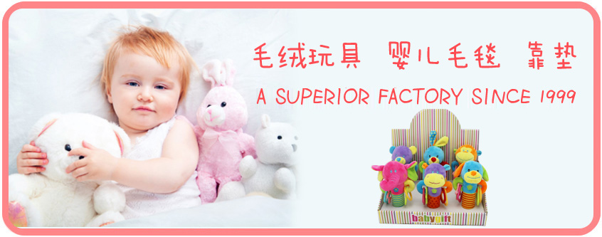 創(chuàng)建于1999年,公司主要經營產品有:各種毛絨玩具,靠墊,童毯,嬰童家紡產品,布匹等,公司注冊資本300萬美元,現有員工200余人,占地達30畝,廠房15000平方米,可年生產玩具及靠墊2百萬只,家紡成品100萬套,布匹100萬米。
